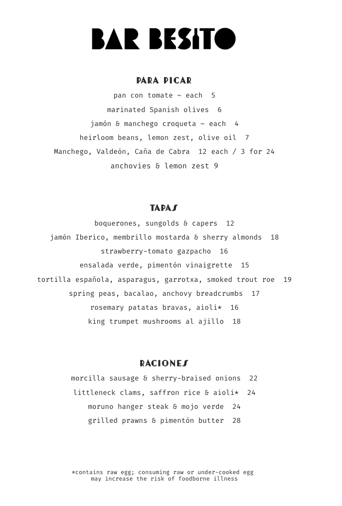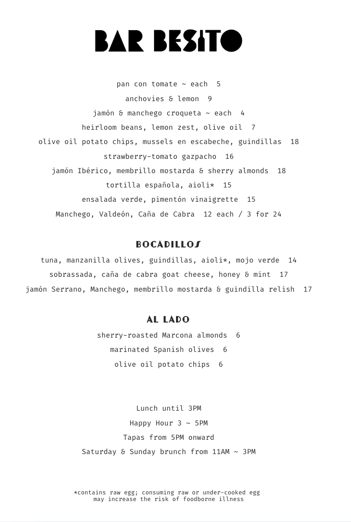 TAPAS ~ 5PM ONWARD
